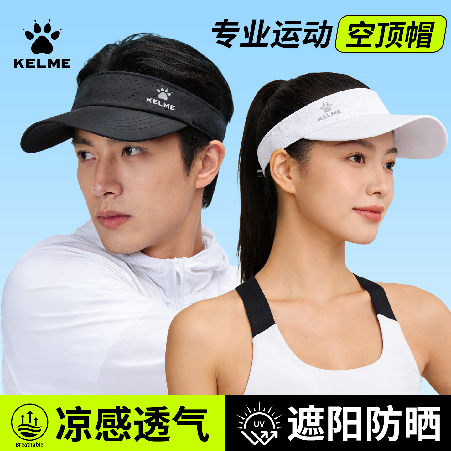 卡尔美空顶帽男女跑步防晒宽檐超轻便携透气遮阳速干运动网球帽子