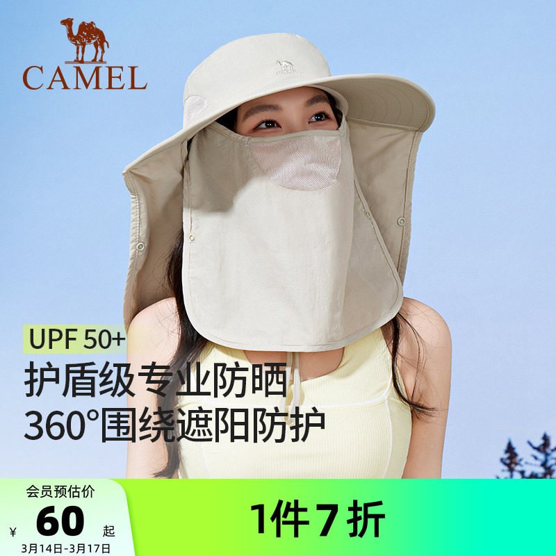 骆驼渔夫帽女防紫外线防晒帽子男全脸遮阳钓鱼帽大帽檐户外登山帽