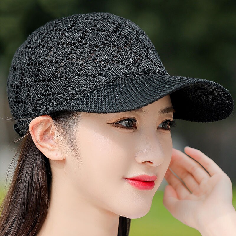 防晒遮阳帽子女夏季出游百搭透气网眼鸭舌帽太阳帽棉麻针织棒球帽