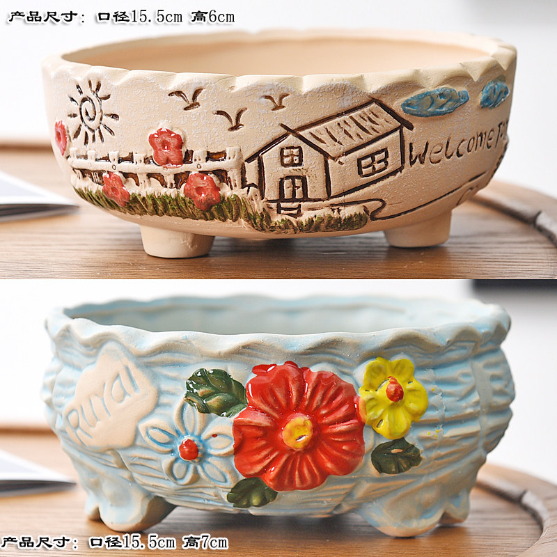 大口径多肉花盆陶瓷田园特价清仓粗陶透气特大号肉肉植物组合拼盘