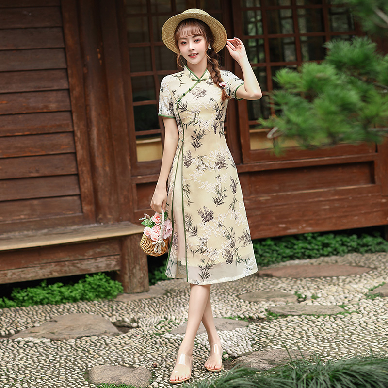 刺绣新款少女中式改良时尚盘扣夏季日常修身复古民族风旗袍连衣裙