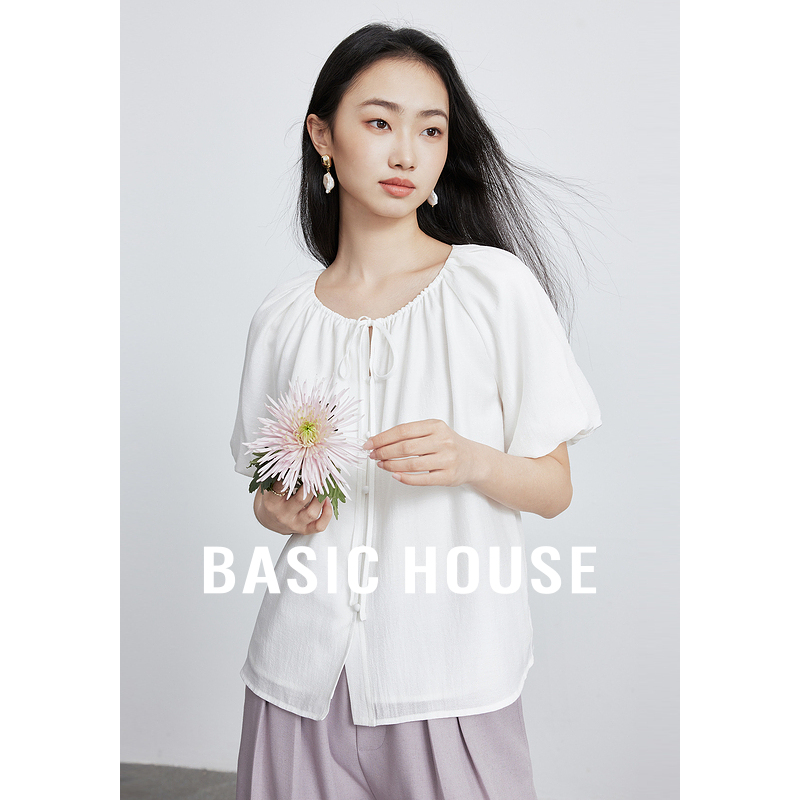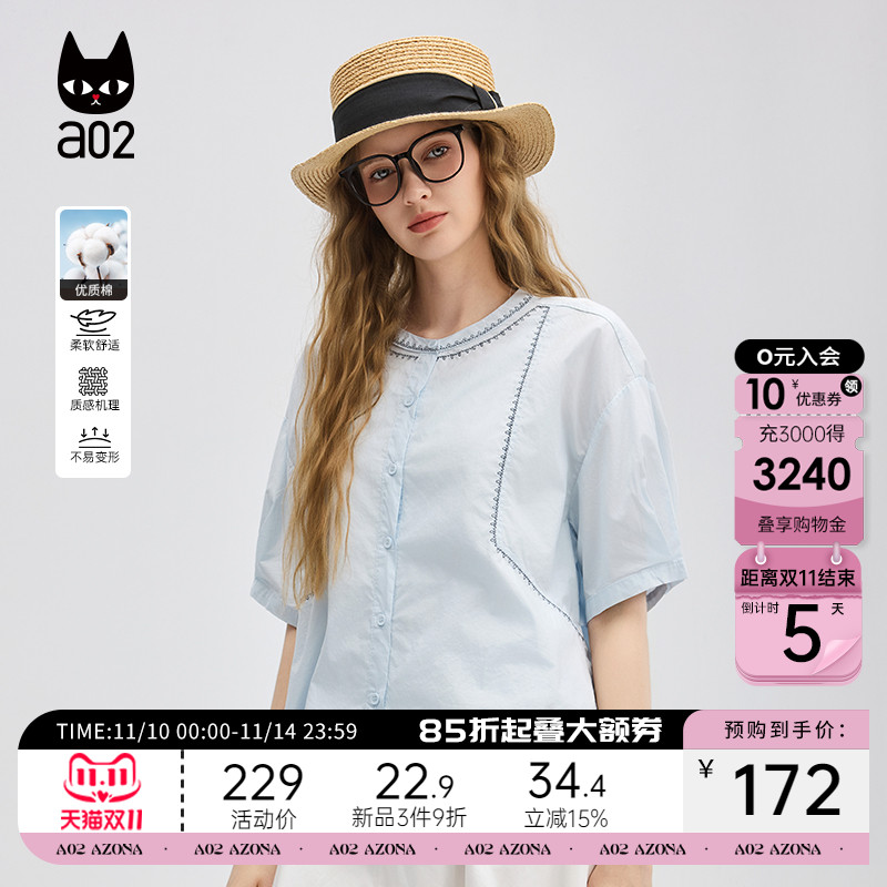 a02甜美风圆领短袖衬衫女2025新款夏季白色小衫设计感文艺上衣