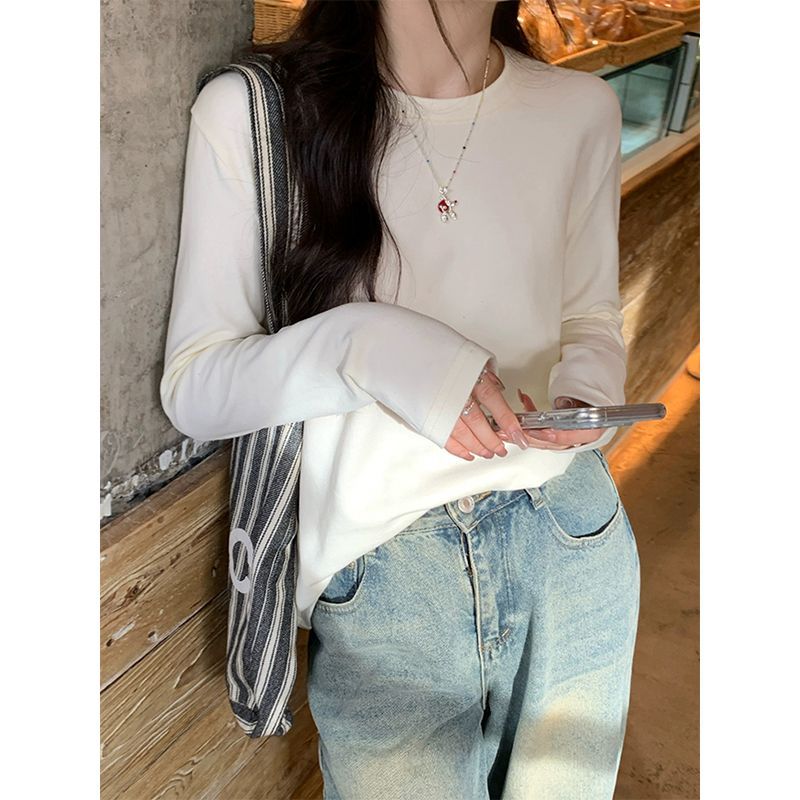 重磅基础款白色小衫长袖T恤女秋冬2025新款显瘦遮肉加厚打底上衣