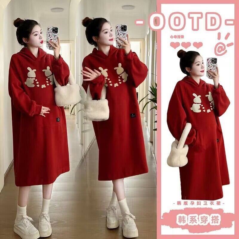 减龄保暖卫衣裙~连帽卫衣中长款冬装孕妇秋冬宽松休闲显瘦连衣裙