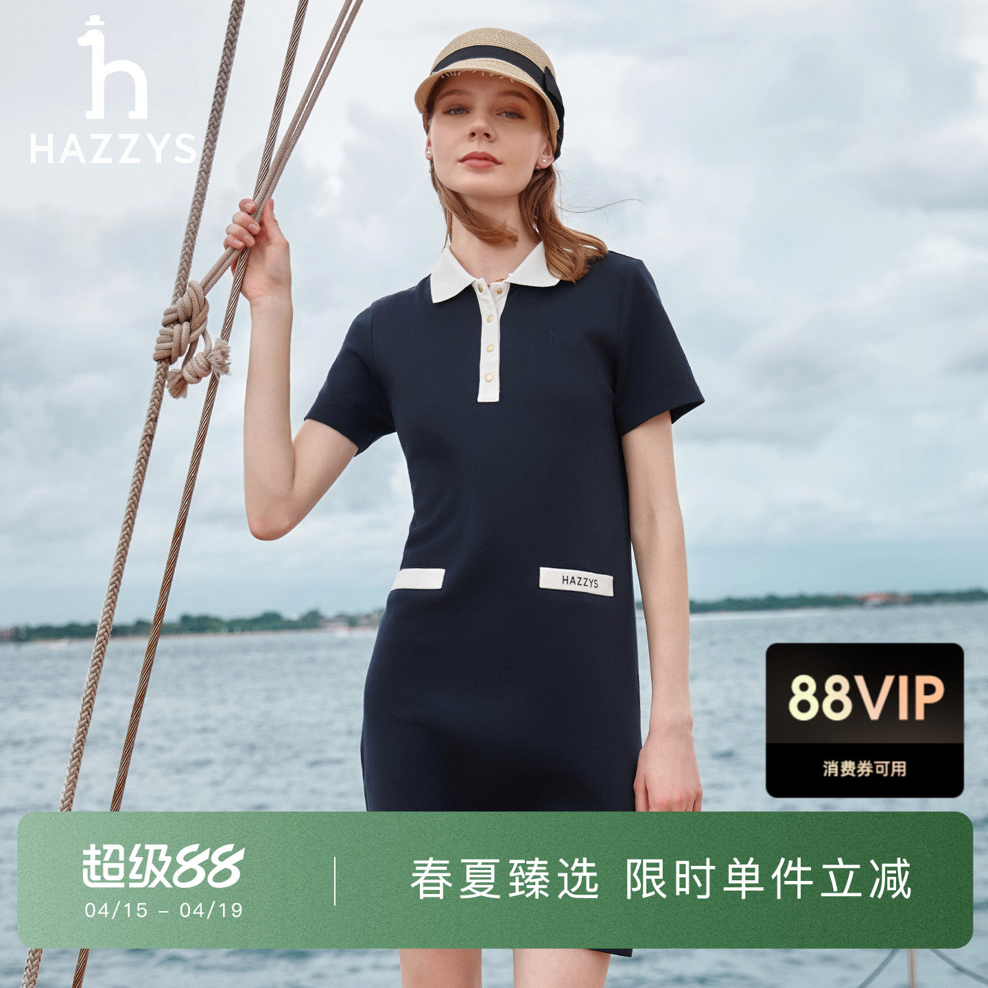 【春夏甄选】Hazzys哈吉斯休闲短袖polo连衣裙女士时尚显瘦针织裙