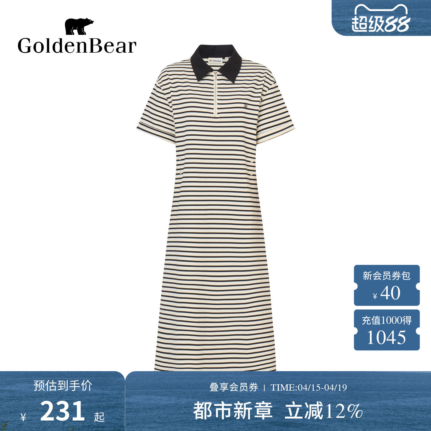 【商场同款】GOLDEN BEAR/金熊 夏季女士短袖针织连衣裙