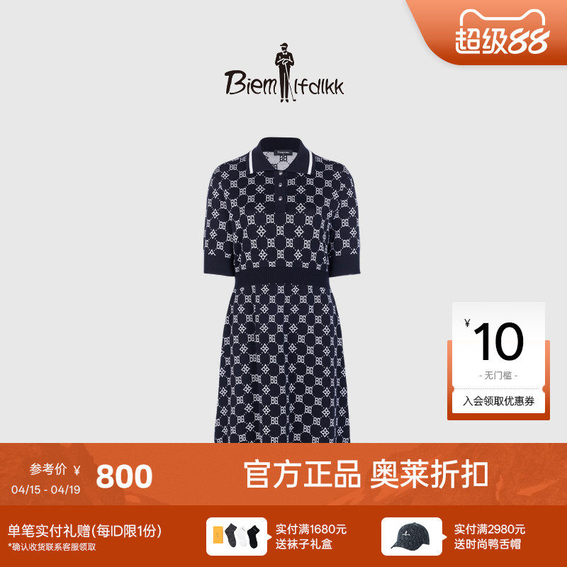 【棉弹针织】比音勒芬夏季女士复古老花polo领中长款短袖连衣裙