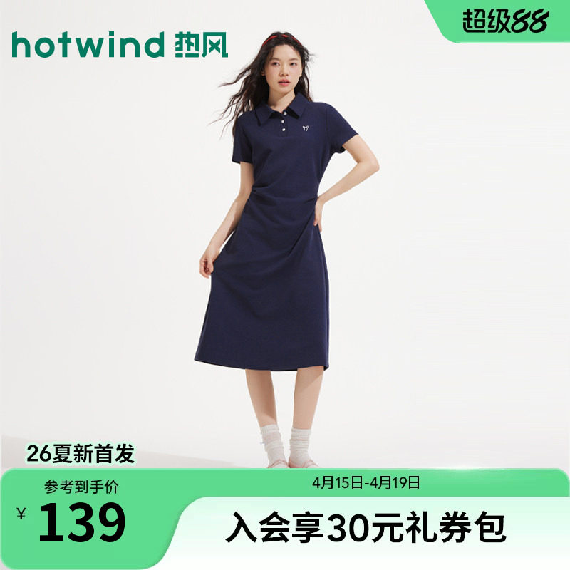 热风女士POLO衫T恤连衣裙2026年夏季新款翻领收腰通勤风针织长裙
