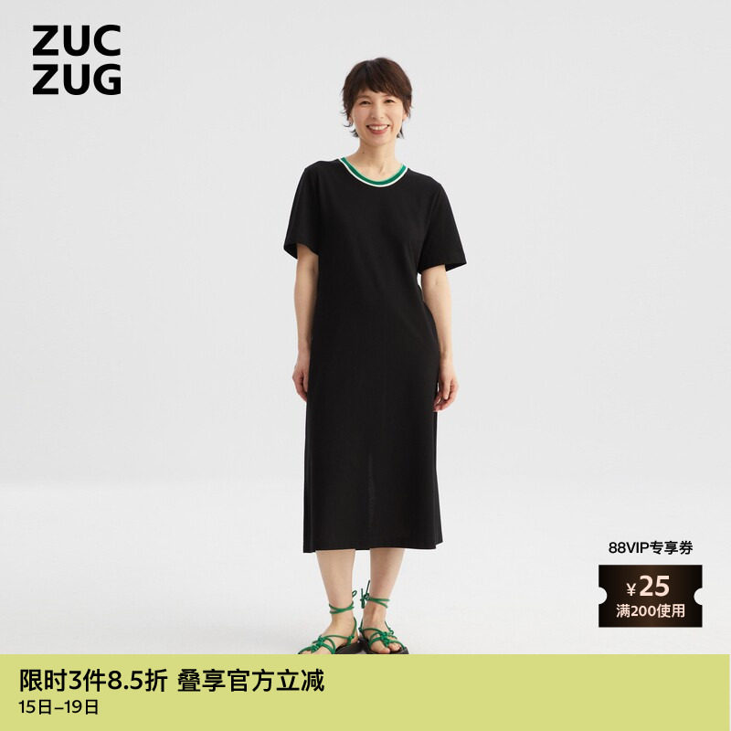 【新品】ZUCZUG 素然夏季女士经典珠地针织布拼横机直身连衣裙