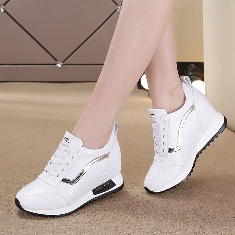 鞋子女2025新款春季百搭内增高女鞋8cm春夏白色休闲鞋坡跟小白鞋