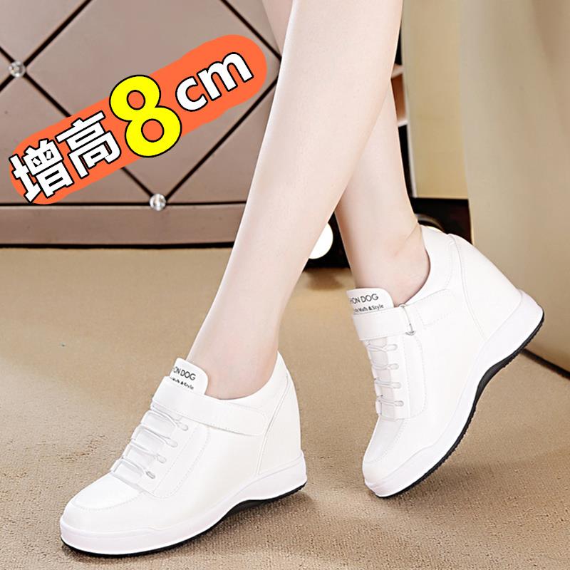 运动鞋坡跟内增高小白鞋厚底大码鞋6CM皮面乐福鞋白色护士鞋女鞋