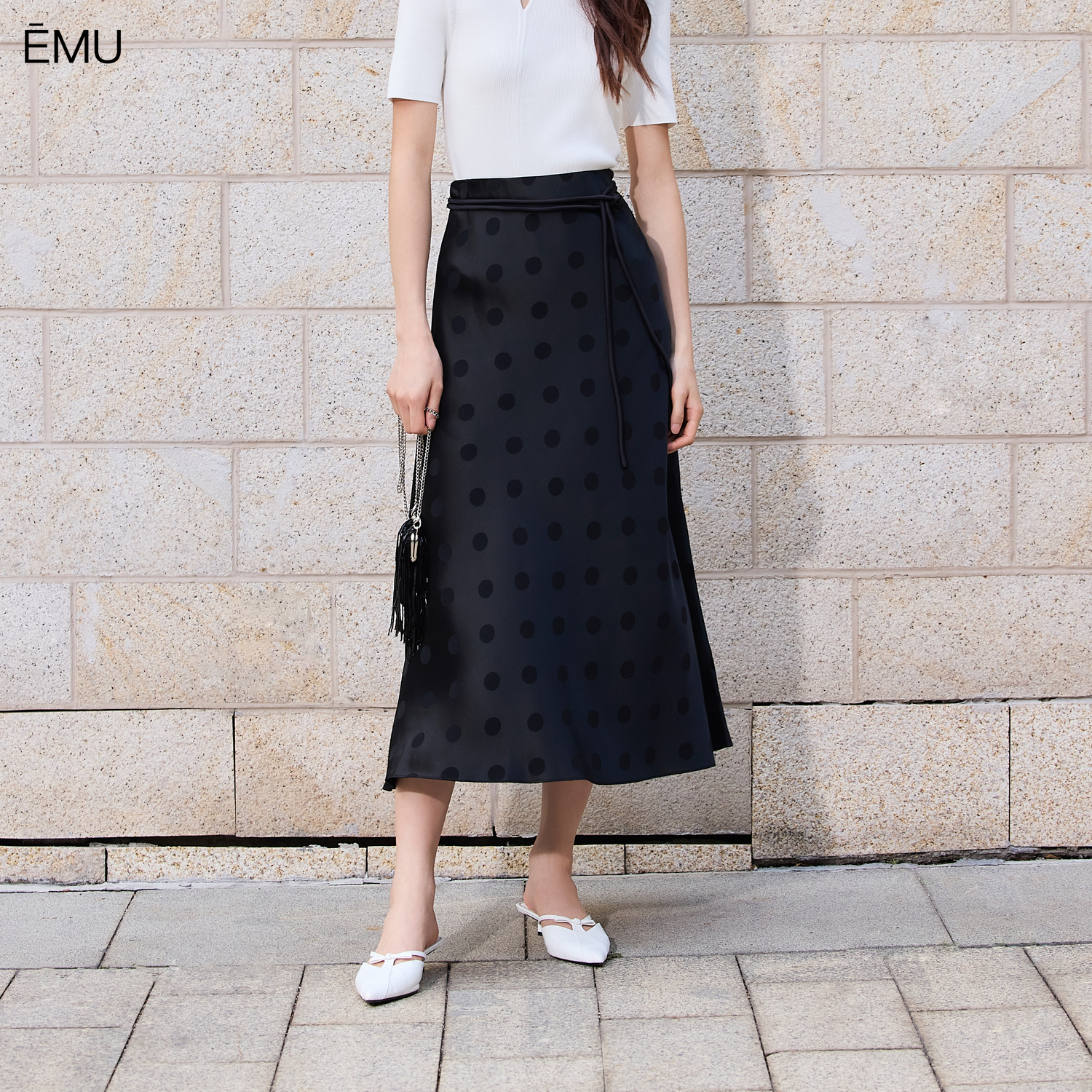依秒EMU国风波点绑带醋酸半裙新中式系带长裙2025夏季新款