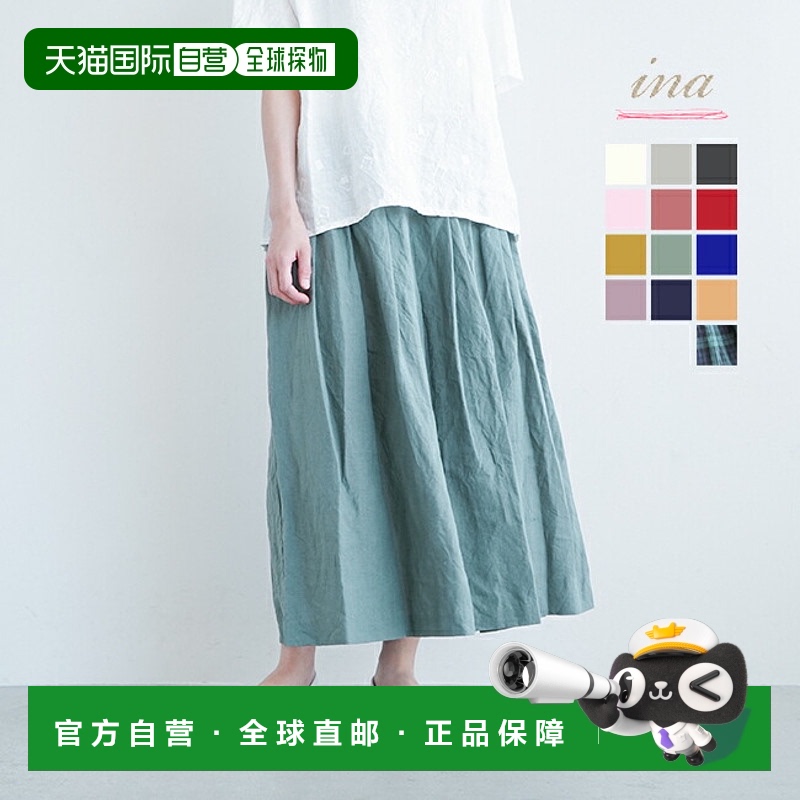 日本直邮[135128] ina 亚麻腰系带长裙/长裙正品时尚舒适高级感