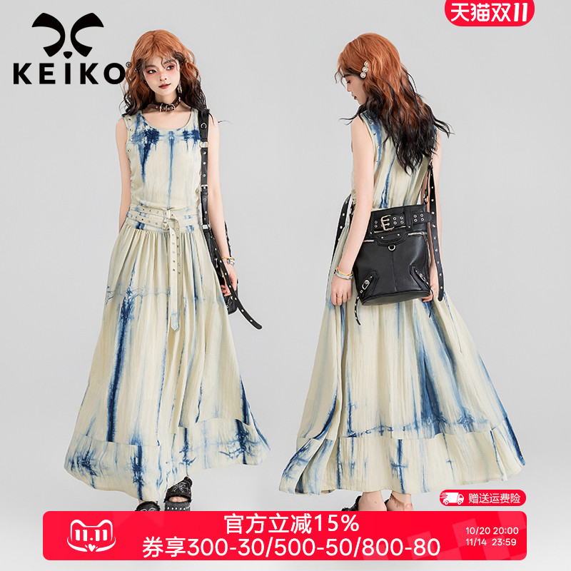 KEIKO 限定直条扎染无袖连衣裙2025春夏法式艺术感系带长裙背心裙