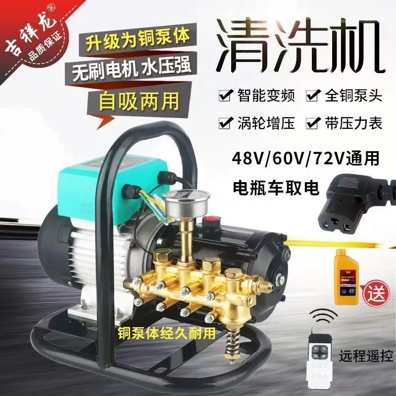 直流电瓶洗车机48V60V72V锂电高压清洗机电瓶上门洗车泵流动洗车