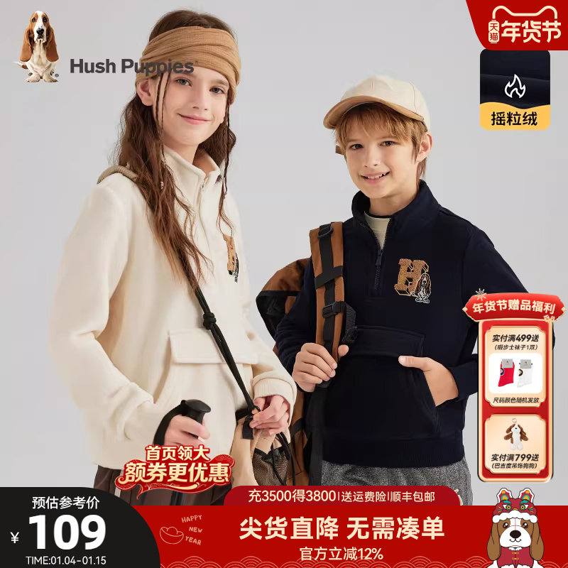 EBAER童装男童休闲卫衣儿童春秋冬款女童套头上衣户外半开襟绒衫