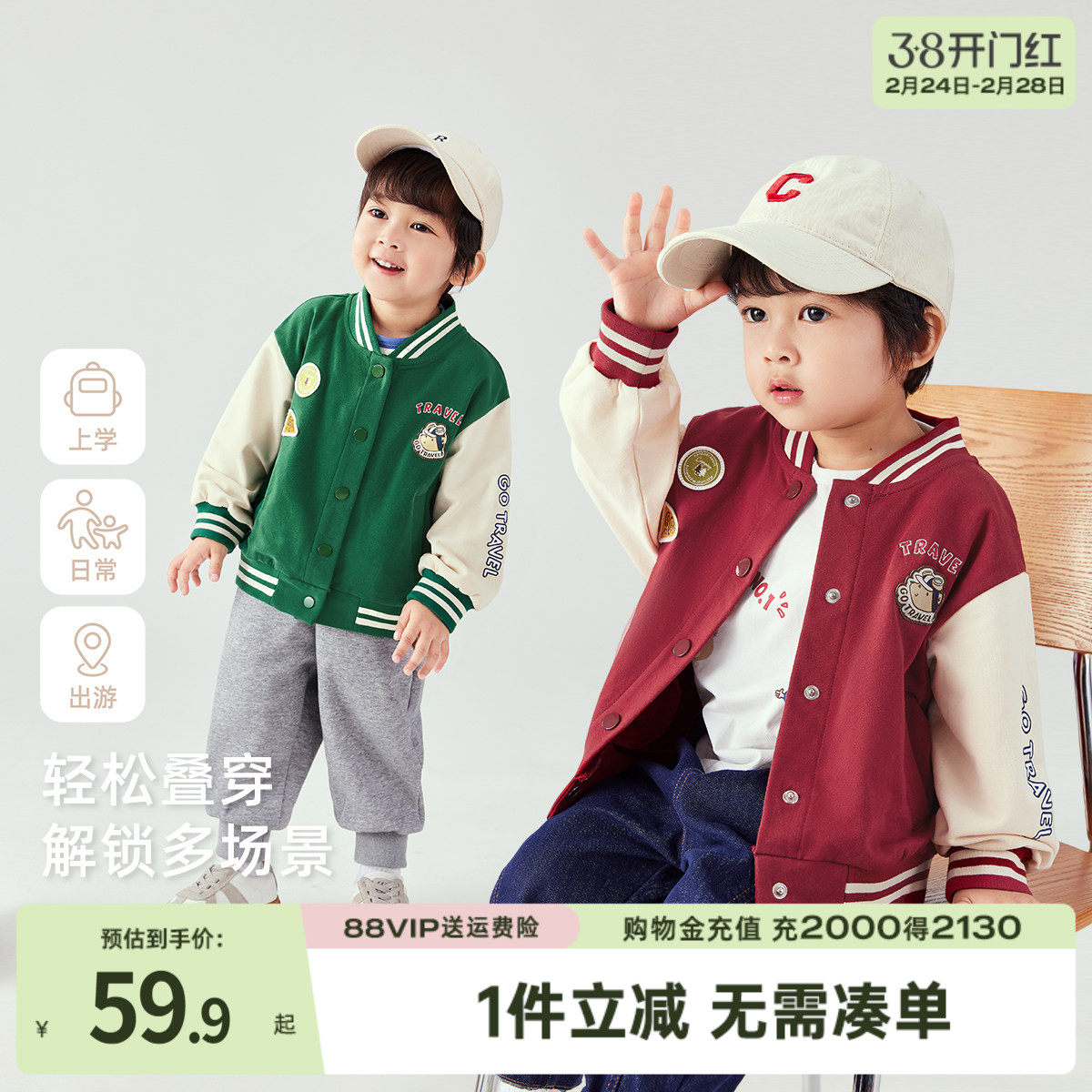 [7A抗菌]男童春装2026新款外套宝宝春季休闲学院风衣服儿童棒球服