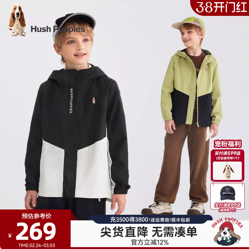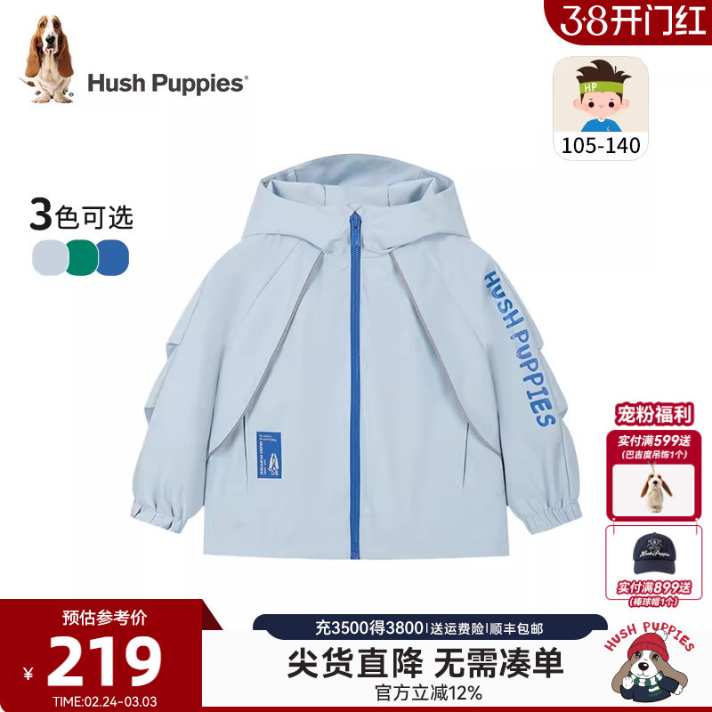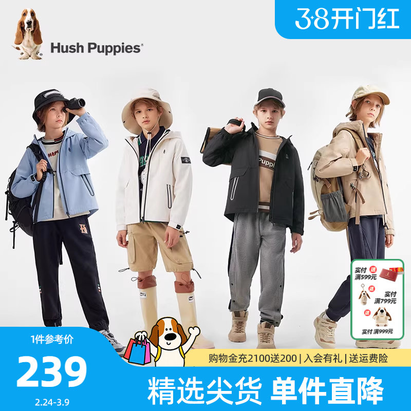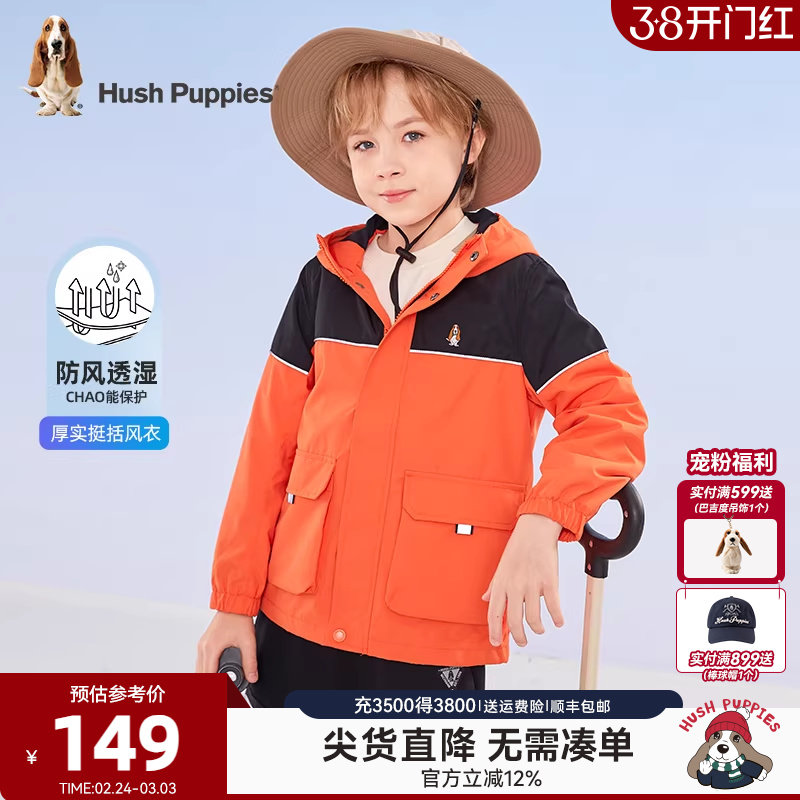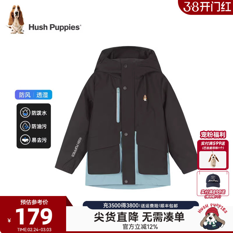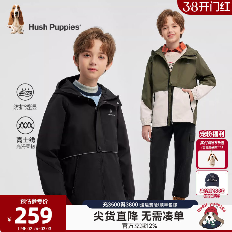 暇步士童装儿童三防外套春新款男童简约户外风衣女童休闲连帽上衣