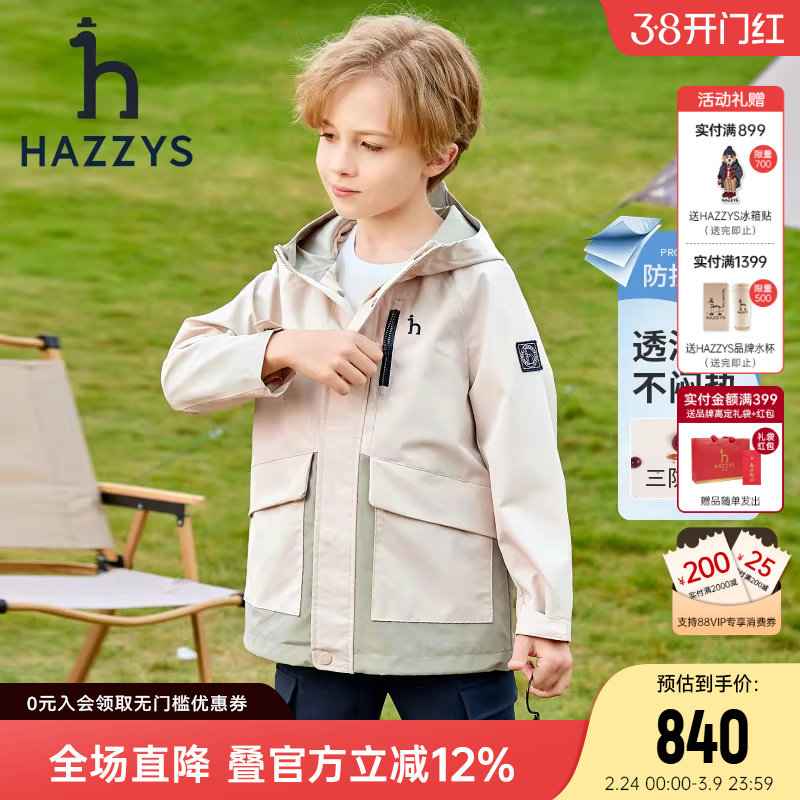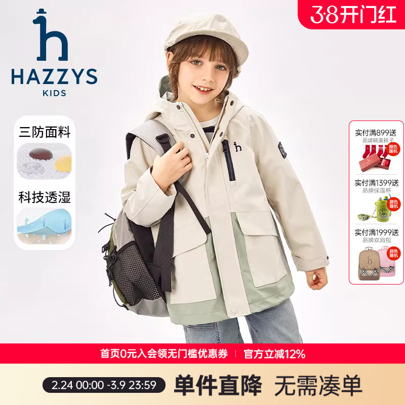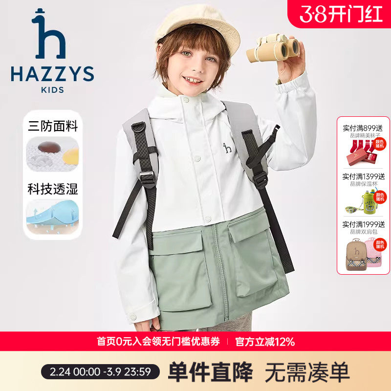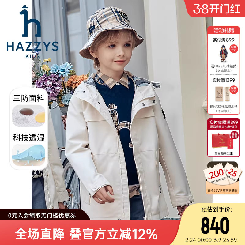 hazzys哈吉斯童装男童风衣春新中大童防护科技三防连帽外套