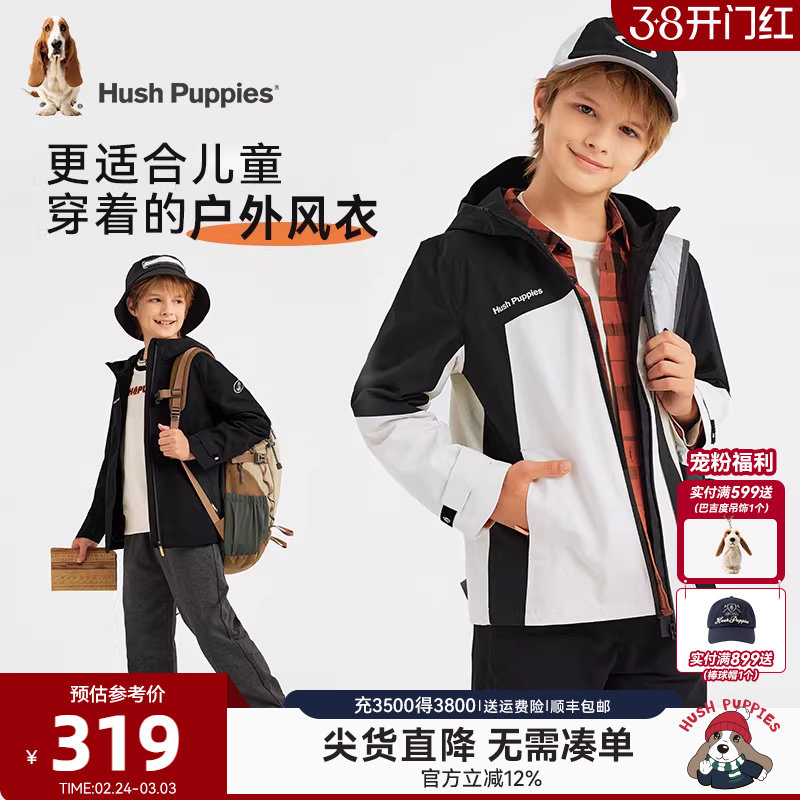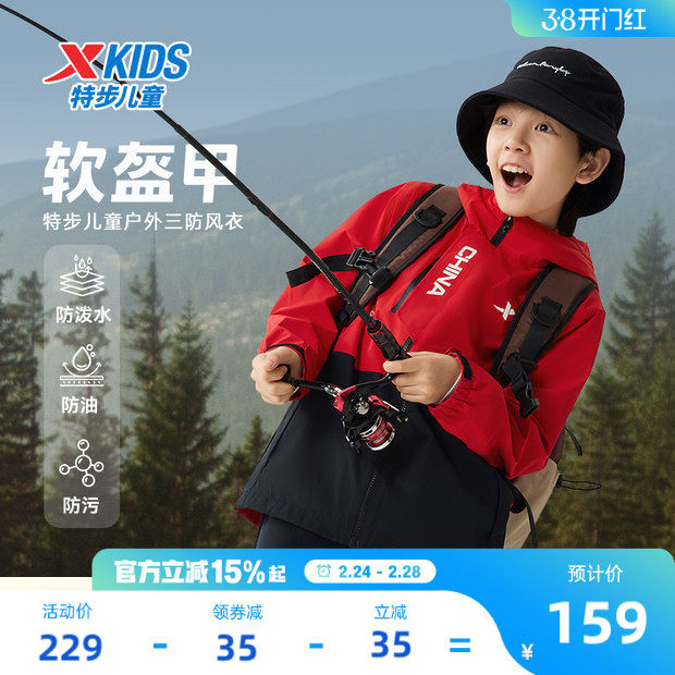新年红色|361童装男童冲锋外套女童加绒衣服春季新款四防儿童风衣