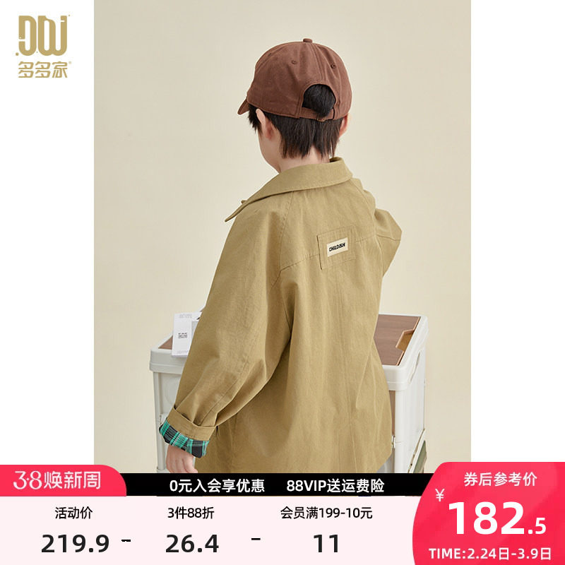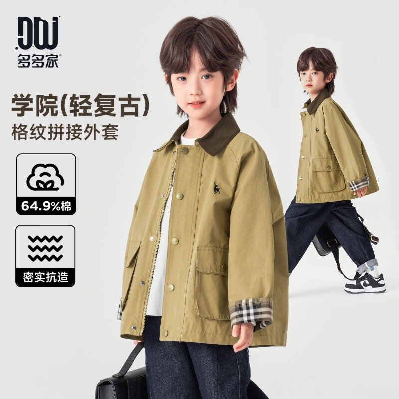 多多家男童风衣春秋款纯棉儿童外套2026新款春装翻领卡其色上衣