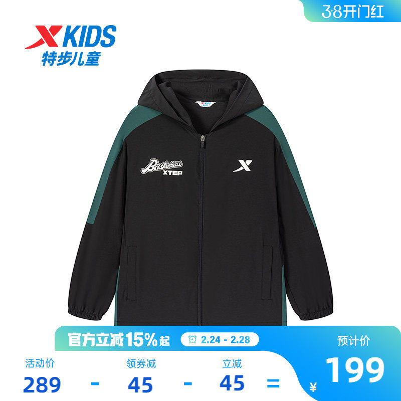 【商场同款】特步童装男童风衣春秋季新款大连帽防风儿童拼色外套