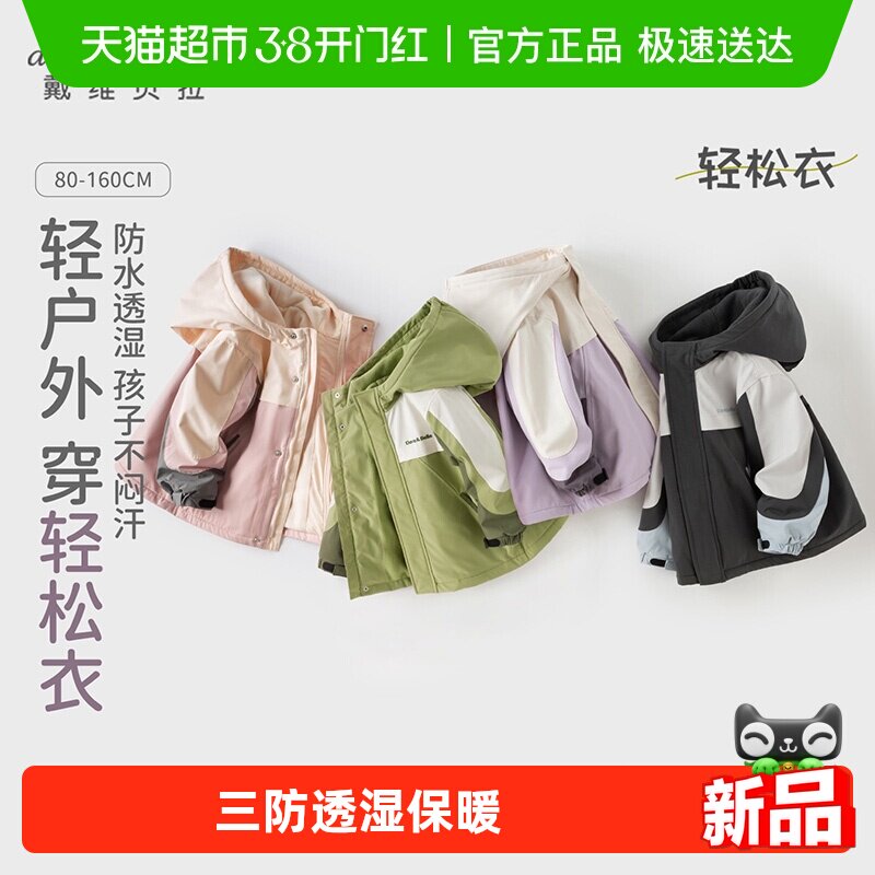 【三防透湿】戴维贝拉儿童外套男童春秋2026新款防风衣女童棉服