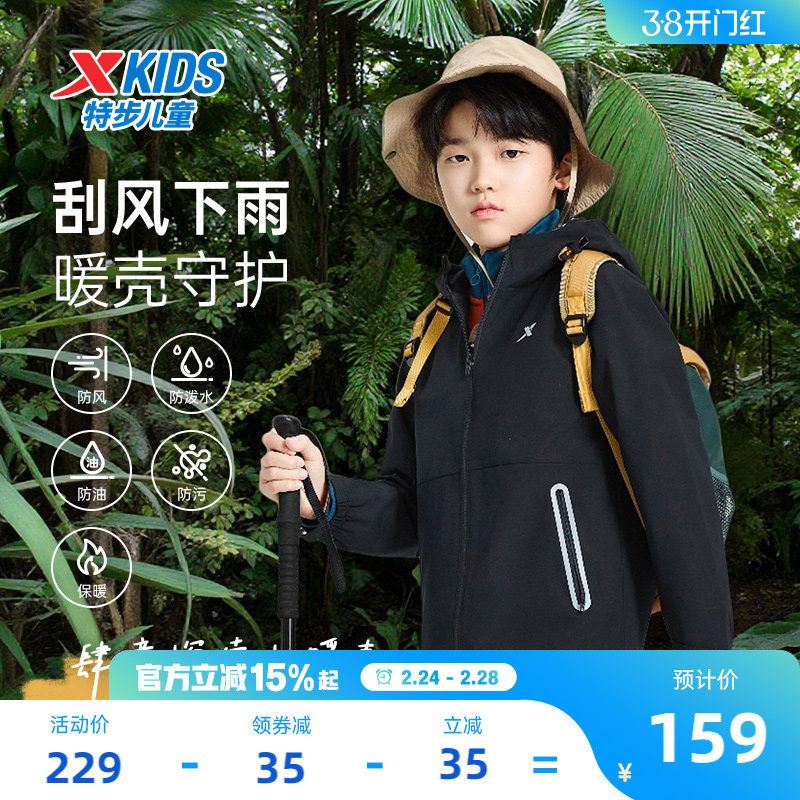 暖壳特步童装儿童风衣外套男童春秋季运动上衣加绒户外三防易清洗