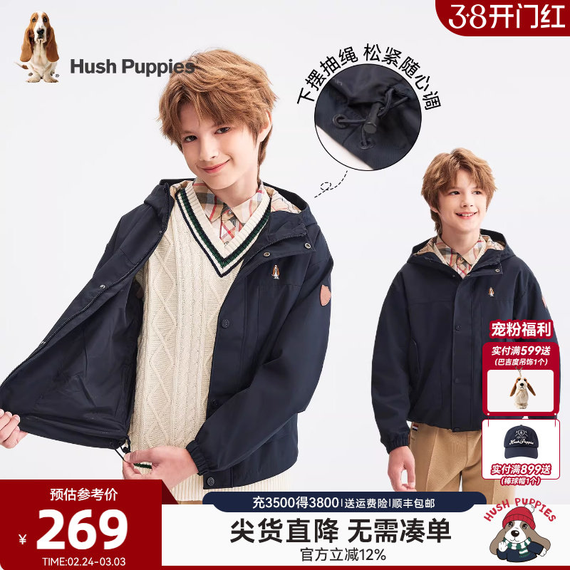 暇步士童装男童风衣春秋新品大童连帽轻户外风衣儿童休闲防护外套