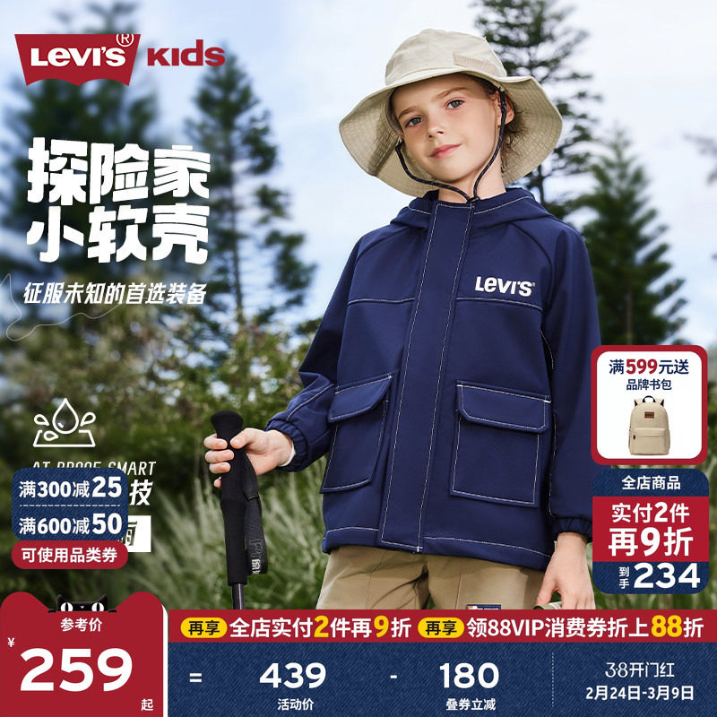 【小软壳加绒】Levis李维斯男童外套儿童风衣春秋装新款加绒保暖
