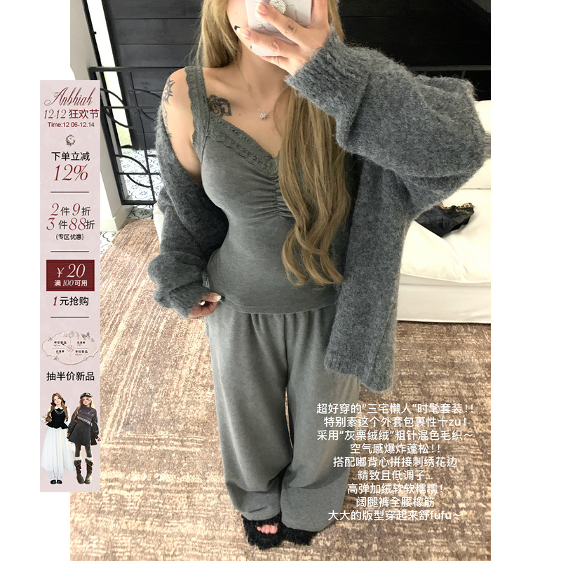 安妮不火 秋日氛围感软糯亲肤毛织三件套女微胖大码休闲保暖套装