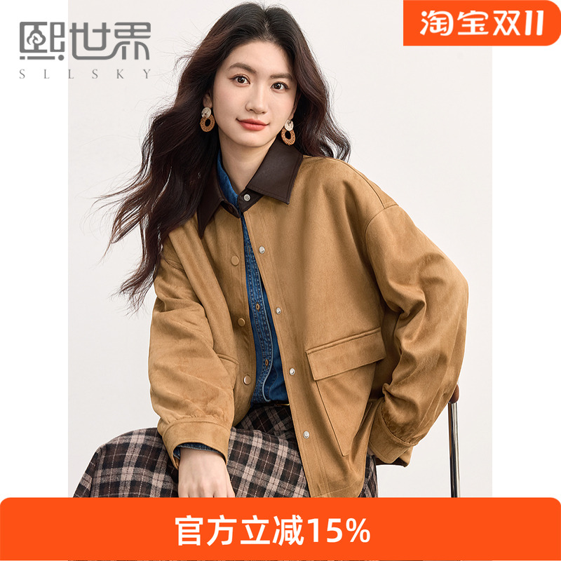 熙世界麂皮绒外套女2025秋季小个子短款工装风女士休闲夹克上衣