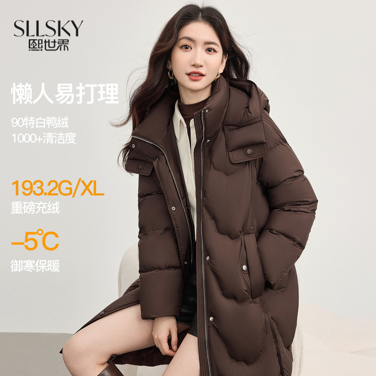 熙世界静奢老钱风咖色羽绒服女中长款白鸭绒御寒外套2025冬季新款