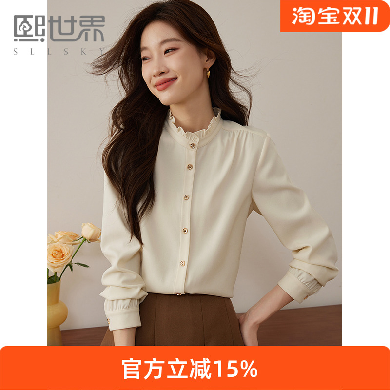 熙世界法式复古磨毛衬衫女2025年秋冬新款休闲长袖翻领洋气衬衣