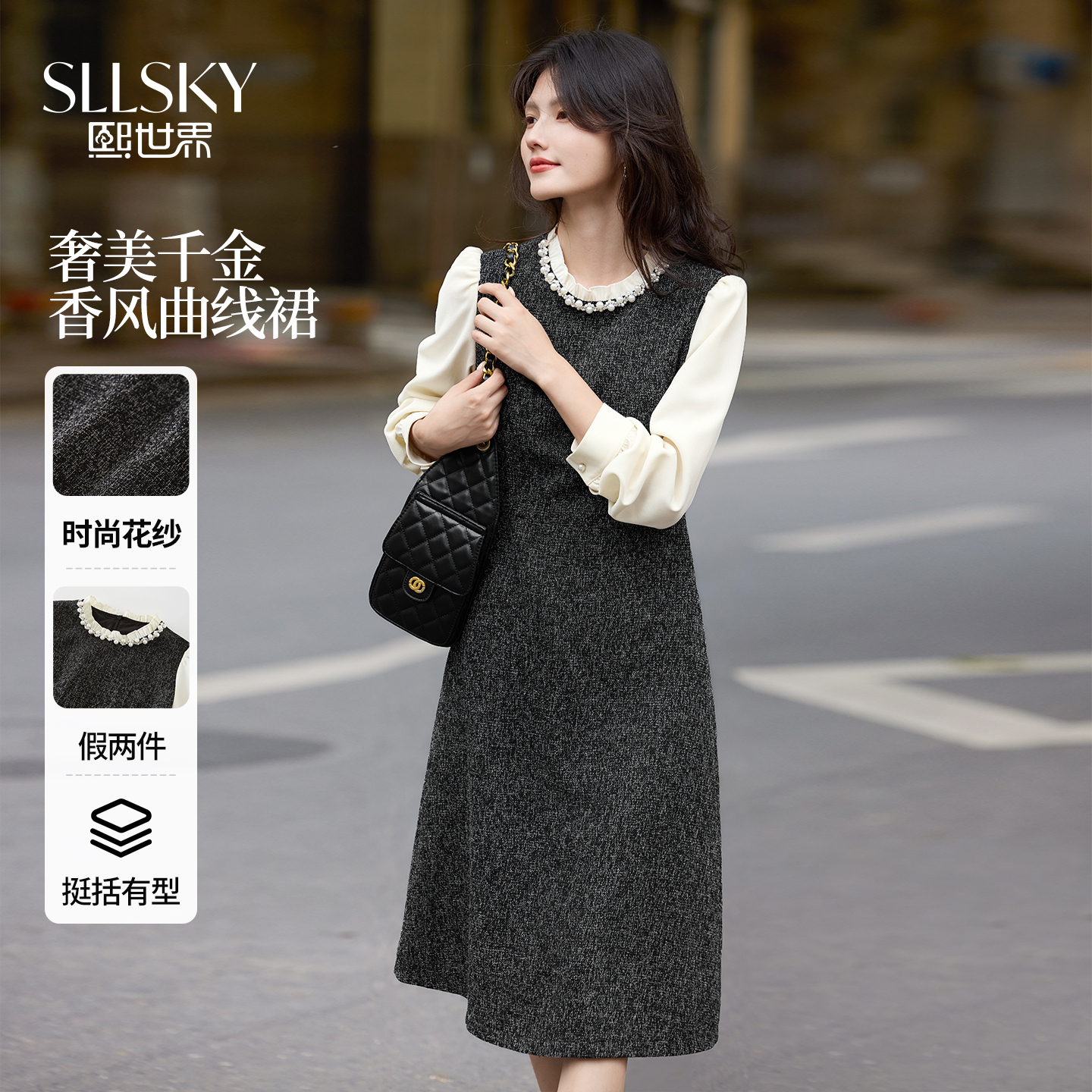 熙世界小香千金风法式连衣裙女2025秋冬新款假两件大方得体的裙子