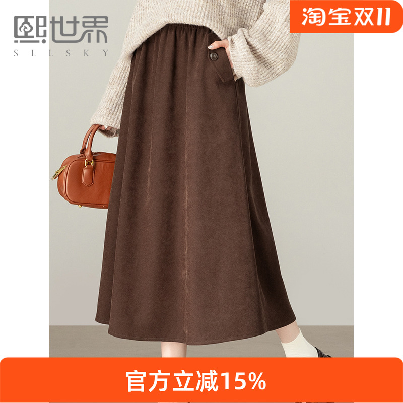 熙世界通勤复古磨毛半身裙女秋冬高腰垂感遮肉显瘦梨形身材a字裙
