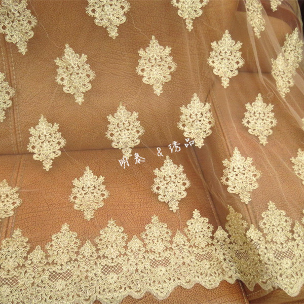 刺绣车骨蕾丝面料布料连衣裙服装布料带花边# 金色车骨网布刺绣