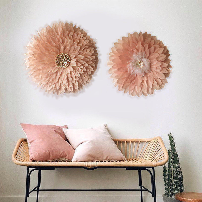 粉黛。ins羽h毛镜壁饰壁挂装饰画少女心 玄关客厅沙发床头轻奢壁