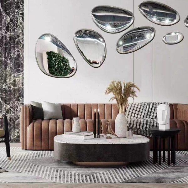 水轻奢镜面饰滴创意壁饰壁挂装饰客厅鹅卵石玻璃钢镜子墙壁挂现代