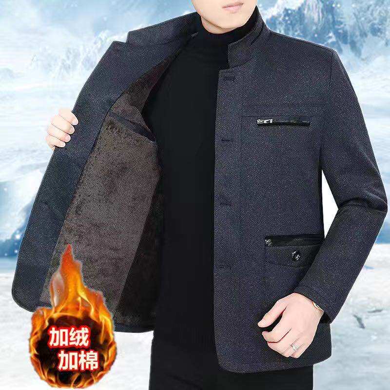 爸爸冬装外套男加绒加厚新款中年男士毛呢夹克中老年男装保暖衣服