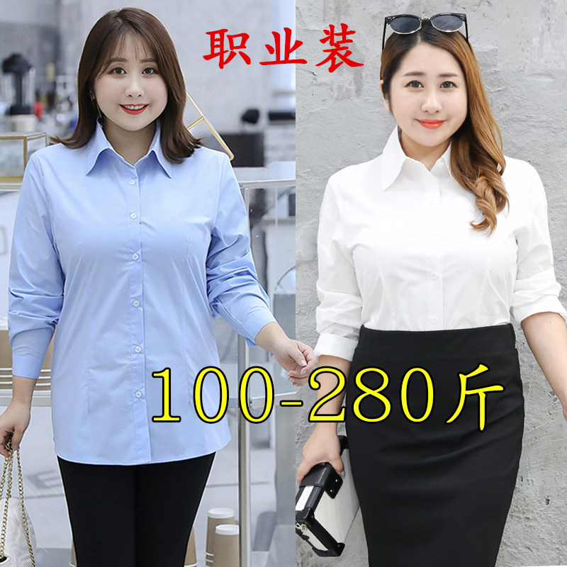 260斤大码白衬衫女宽松胖mm春秋职业装胖妹妹工作服200特大码衬衣