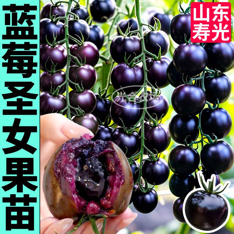 爆汁超甜蓝莓番茄苗秧黑玫瑰纯黑紫色圣女果西红柿种子四季蔬菜苗