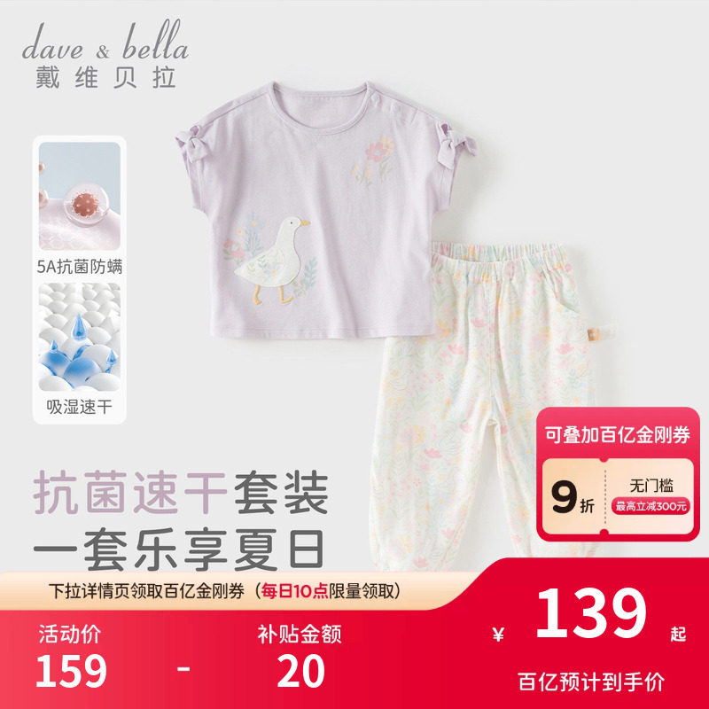 戴维贝拉女童抗菌套装2026儿童新款速干短袖防蚊裤夏装女宝宝衣服