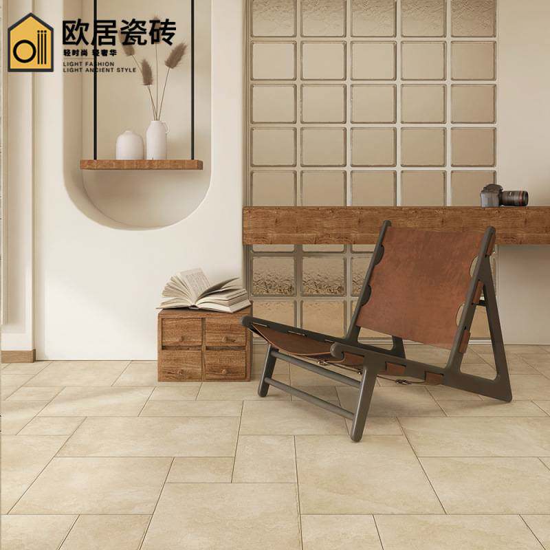 蓝蜜蜂别墅客厅直角仿古砖防滑地砖露台瓷砖美式田园复古砖600