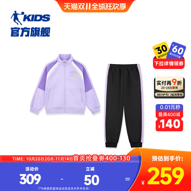 乔丹童装女童春季套装2025新款儿童春装大童洋气拼色衣服外套裤子