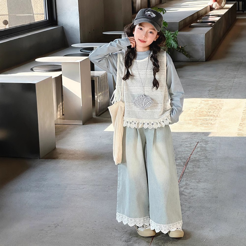 女童背带裤套装2025新款春装大童长裤儿童裤子女孩牛仔裤洋气童装