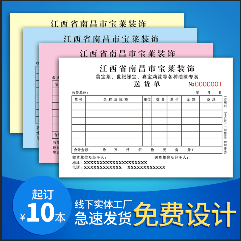 定做收据定制送货单二联三联订做复写开单本彩色多联单据订制号码
