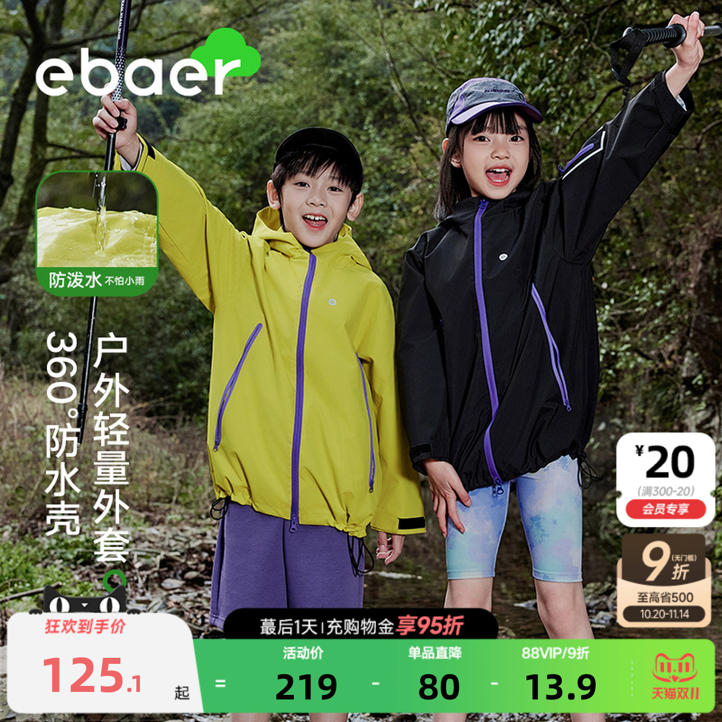 EBAER儿童户外防水外套2025春装新款男童女童时尚连帽上衣童装潮