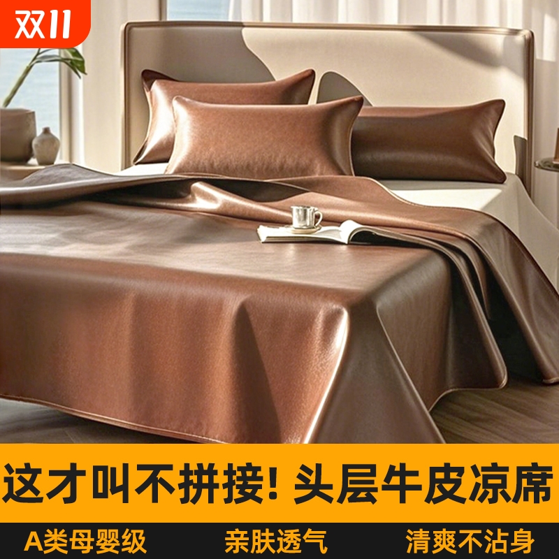 【加特厚】西部水牛皮凉席子1.5米1.8m床真皮头层三件套软席硬席