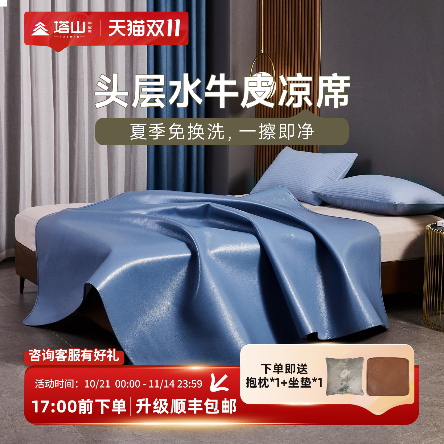 塔山牛皮凉席头层水牛皮纯真皮席子皮凉席床垫高端软席三件套加厚